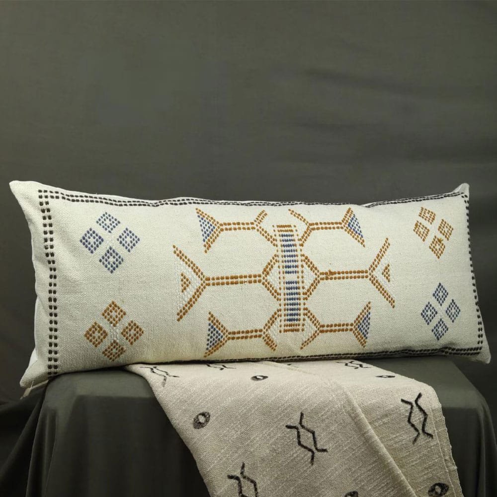 Infondi un tocco bohémien con il nostro cuscino lombare Kilim realizzato a mano