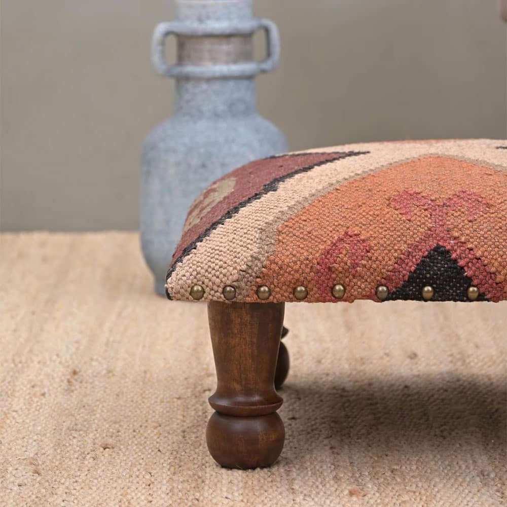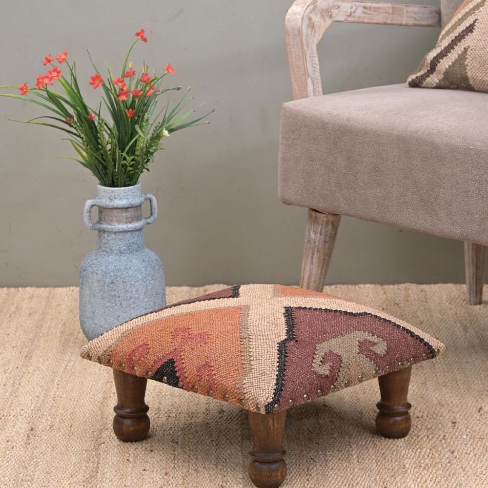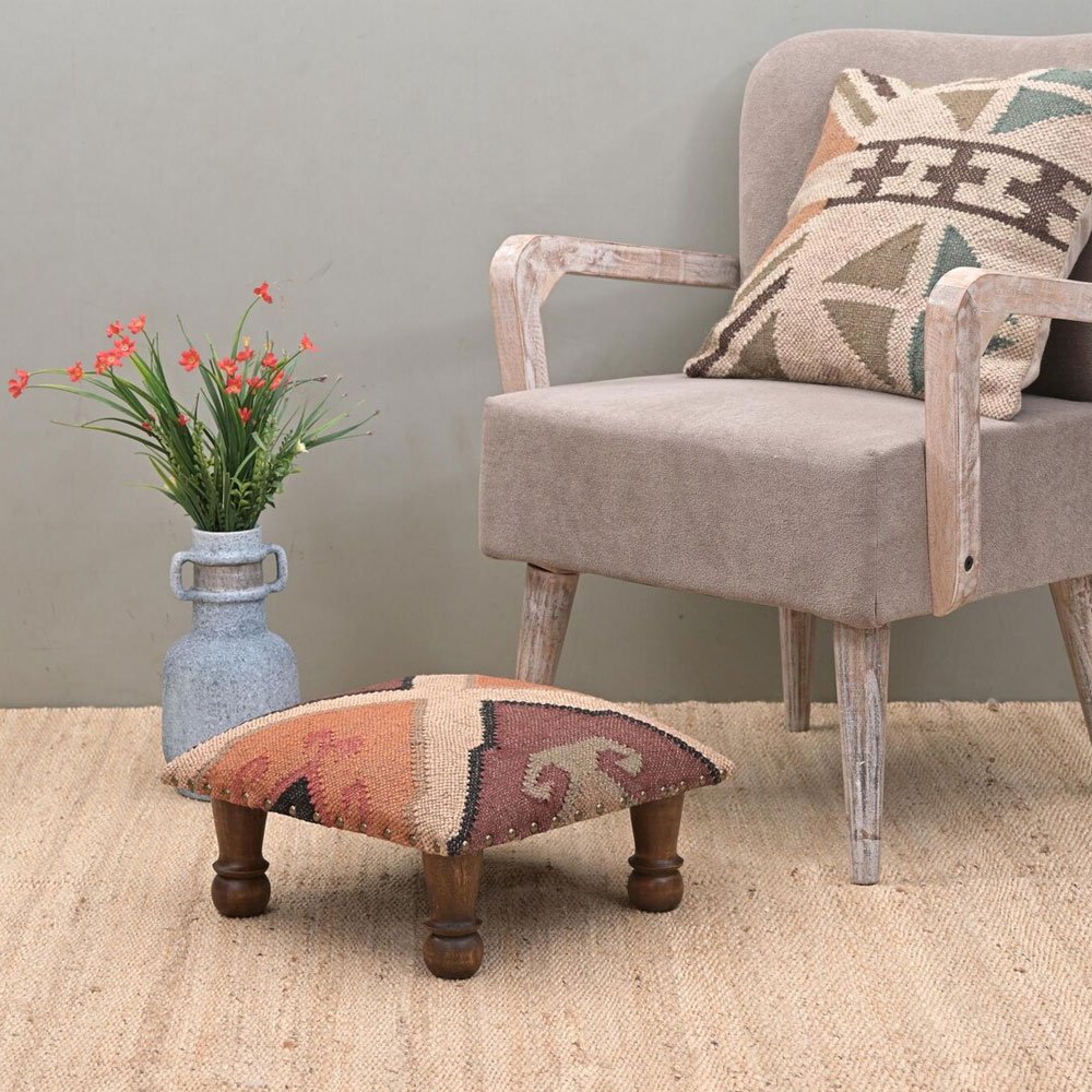 Immagina di rilassarti nel tuo angolo preferito, con i piedi appoggiati su un bellissimo sgabello ottomano in lana e iuta beige realizzato a mano. I suoi motivi vivaci e le sue tonalità calde conferiscono un’atmosfera accogliente a qualsiasi stanza. Realizzato in resistente legno di acacia e autentico tessuto Kilim di Jaipur, questo pezzo non è solo un mobile: è una dichiarazione culturale e un’aggiunta versatile al tuo spazio vitale. Perfetto per gli interni bohémien e rustici, funge da poggiapiedi, da scalino per animali domestici o da accento di stile, diventando un compagno prezioso nei tuoi momenti quotidiani.