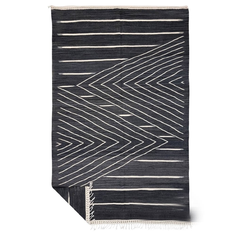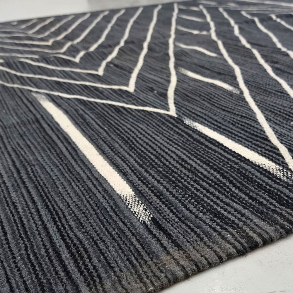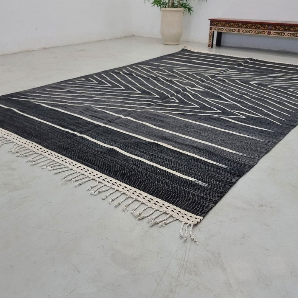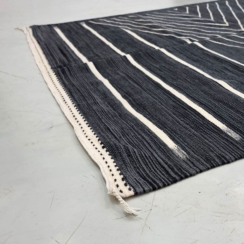 Trasforma la tua casa con il tappeto berbero Black Kilim Flatweave, un capolavoro della tribù Zanafi. Tessuto a mano con disegni intricati, questo tappeto fonde perfettamente il fascino mediterraneo con l’eleganza moderna. La sua arte unica e l’artigianato di qualità superiore lo rendono un pezzo unico, perfetto per aggiungere calore e raffinatezza a qualsiasi ambiente.